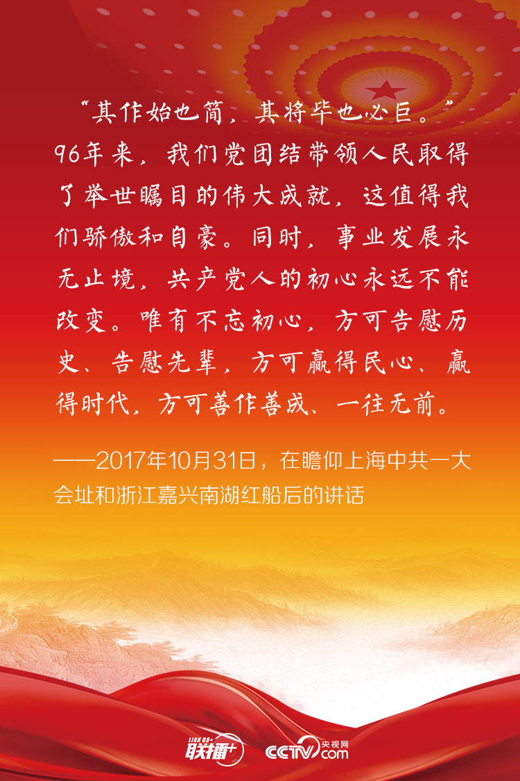 不忘初心,方得始终。在纪念中国共产党成立95周年大会上,习近平总书记向全党郑重发出“不忘初心、继续前进”的号召。此后,他在许多场合都谈到中国共产党人的初心和使命,并为新时代的奋斗征程指明了方向。央视网特整理,与您一起学习理解总书记始终不渝的初心。