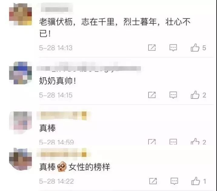 网友纷纷为这位“酷奶奶”点赞