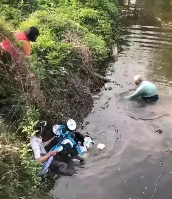 不慎连人带车坠入河中