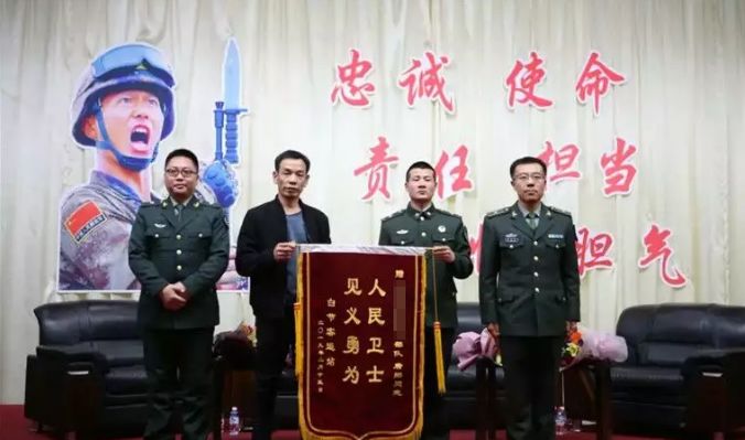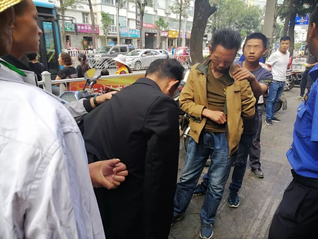 2019年5月26日,武警云南总队大理支队某中队战士李杰、郭新杰、李征南三人周末请假外出。行至大理市泰兴市场附近时,两人张徨失措地从他们身旁跑过,紧接着,从身后传来“抢劫!抢劫!快抓住他们!”的求助声。循声望去,一位老伯呼喊着追赶过来。三人上前询问得知,老人被刚才仓皇逃窜的两人抢走了1000元钱。