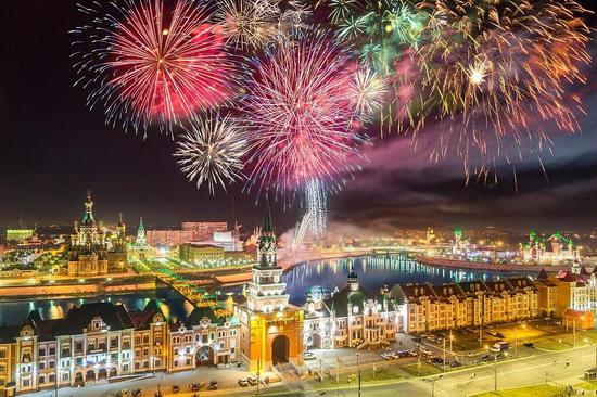 色彩斑斓的极光点亮摩尔曼斯克的极夜