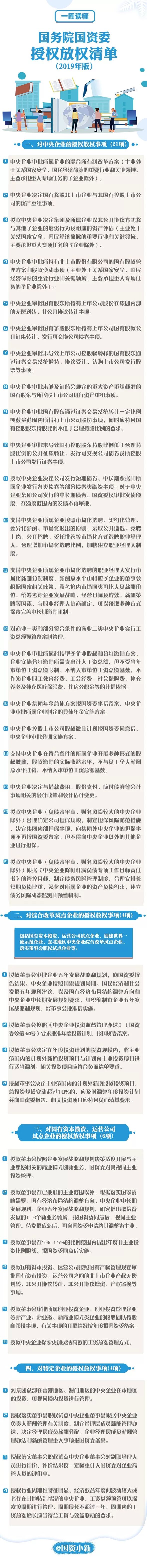 2019年6月3日,国务院国资委向各中央企业、地方国资委印发《关于印发<国务院国资委授权放权清单(2019年版)>的通知》,要求各中央企业结合实际贯彻落实。要求各地国资委按照国发〔2019〕9号文件要求,结合实际积极推进本地区国有资本授权经营体制改革,制定授权放权清单,赋予企业更多自主权,促进激发微观主体活力与管住管好国有资本有机结合。通知全文如下:
