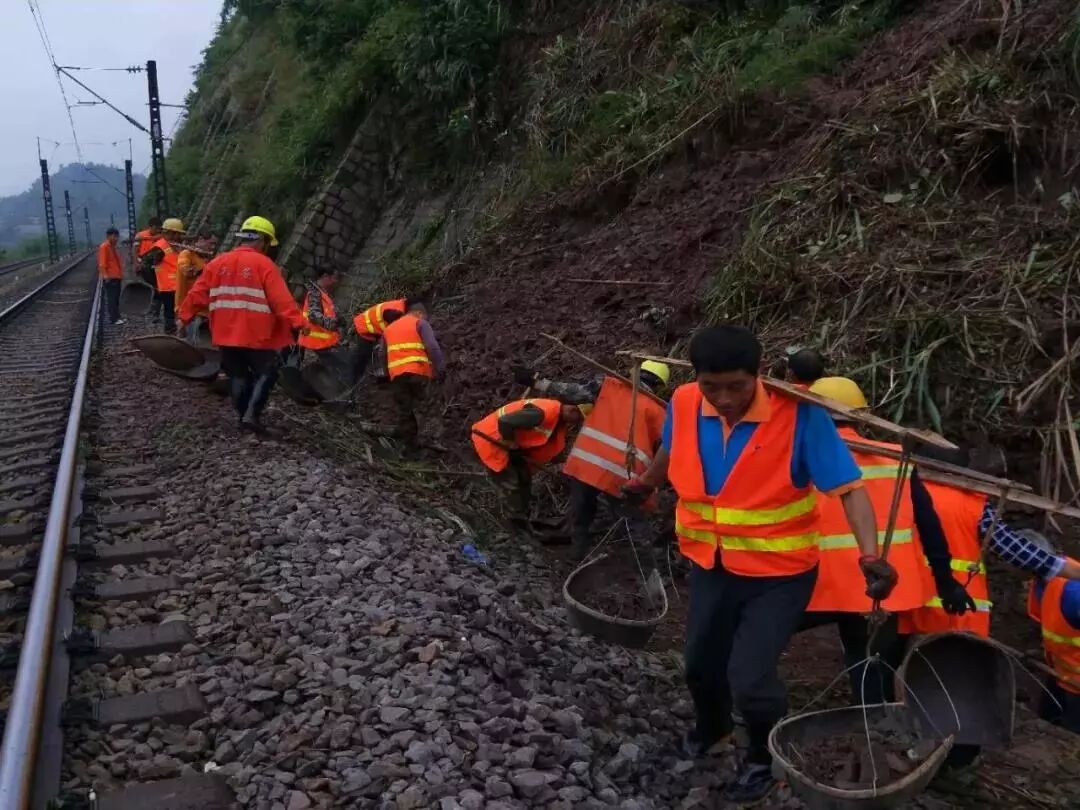 鹰潭工务机械段组织安排大型养路机械对线路进行紧急抢修。龙岩工务段、萍乡工务段、永安工务段、赣州工务段职工冒雨巡查,对发生水害的线路区段进行紧急抢修。