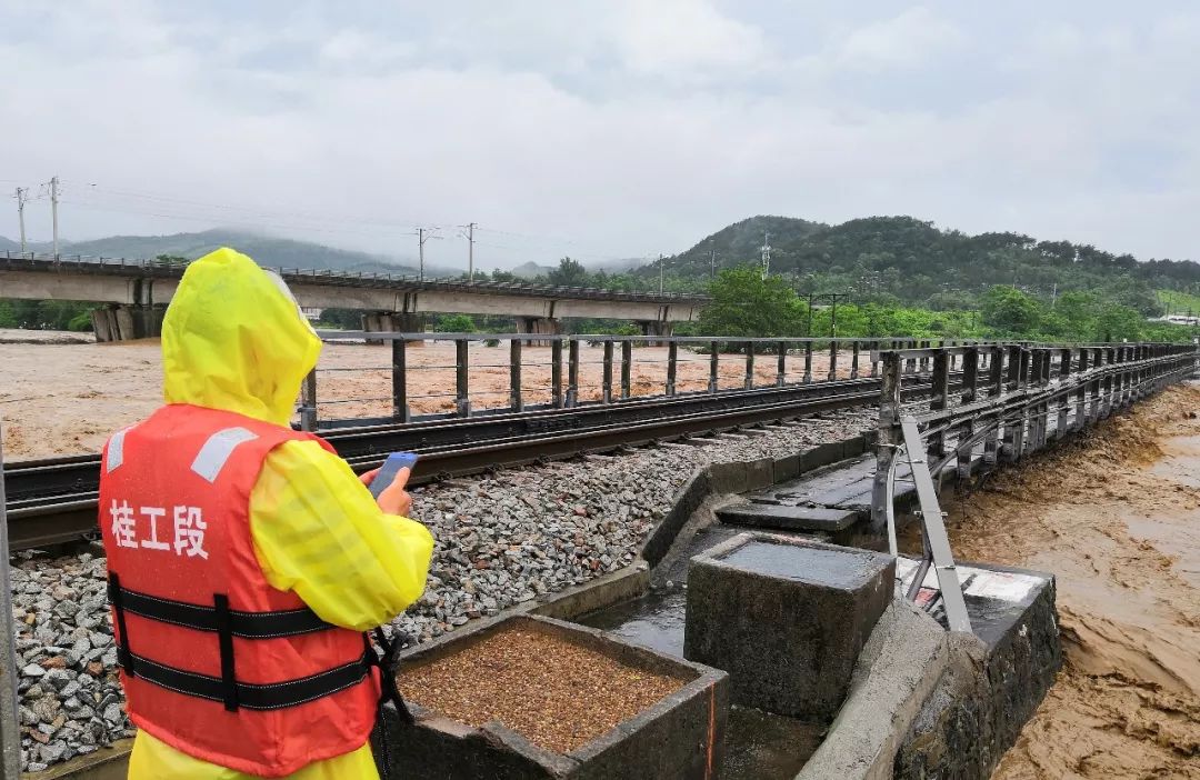 暴雨导致水位上涨,桂林、全州地区铁路沿线河流出现1958年以来最大洪水。湘桂线多处铁路道床被洪水淹没。