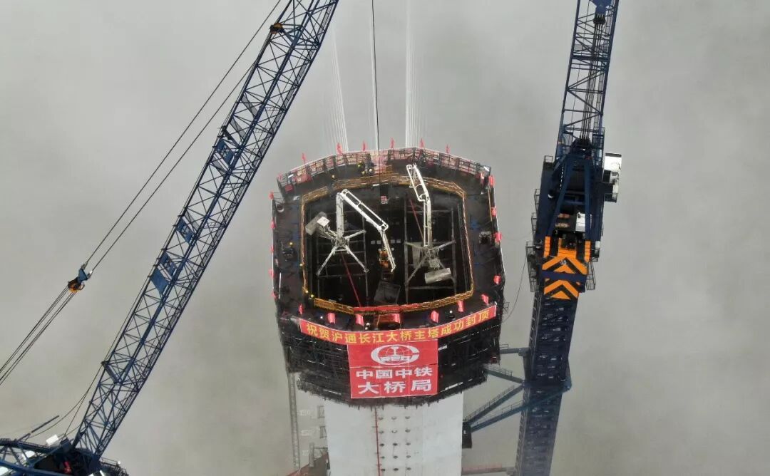 27日,沪通长江大桥南主塔顺利封顶。至此,该桥两座高达330米的主塔全部建成,标志着世界最大跨度公铁两用斜拉桥建设取得了关键性进展。