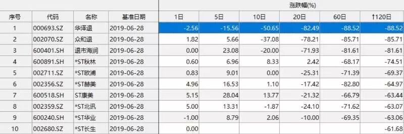 再看看上半年A股跌幅榜名单,清一色都是退市股、*ST股。