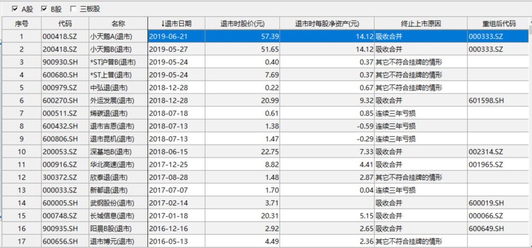 截至6月28日,A股退市股数量有2只,有小天鹅A、*ST上普。还有不少企业将被暂停上市或者退市。如图——