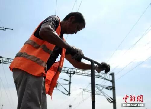 资料图:南昌铁路局九江桥工段的工人们在京九铁路九江区段顶着高温更换伤损钢轨。胡国林 摄