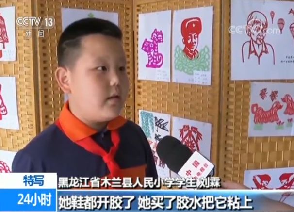 黑龙江省木兰县人民小学学生刘霖:她的鞋开胶了,也没有买新的,而是用胶水粘上。我觉得马奶奶很伟大,我非常敬佩她。