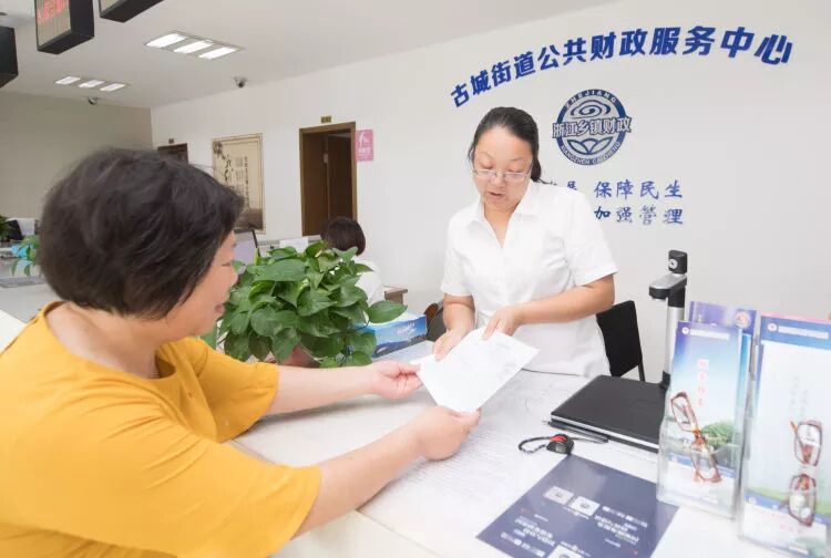 鹿城社区的书记方华芬(左)在古城街道便民服务中心为吴元渺申请一笔社会救助。