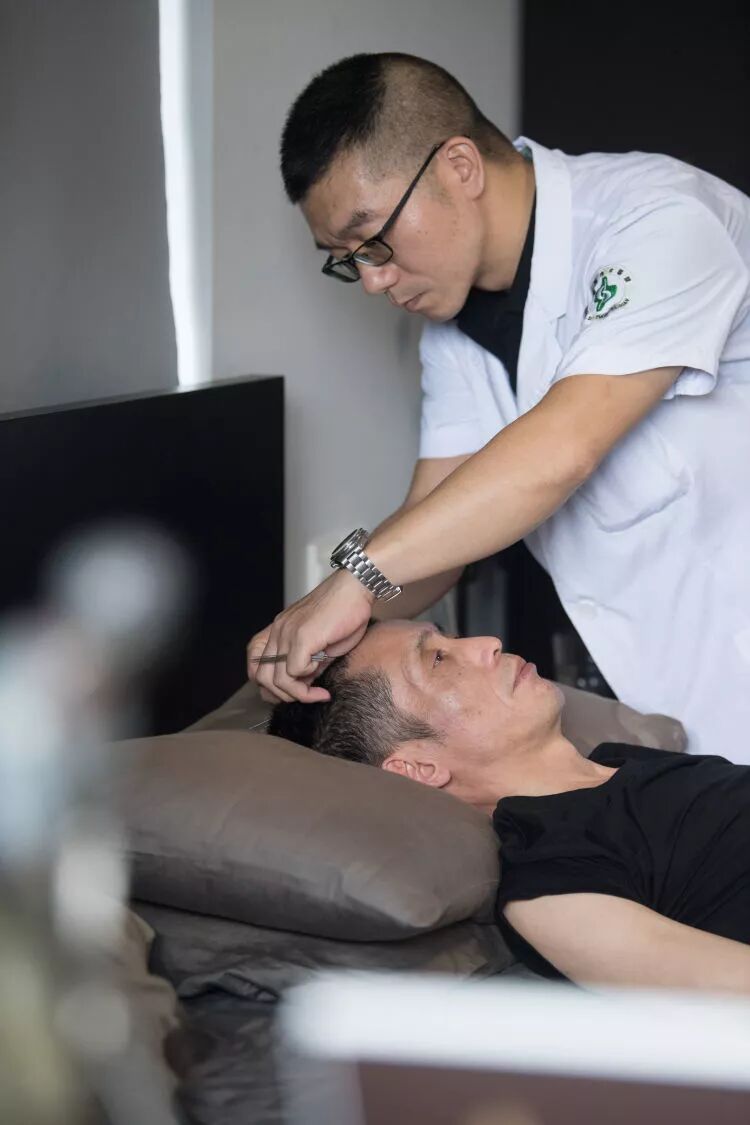 临海市中医院医生洪荣上门给吴元渺做针灸。当地政府为吴元渺联系了送医上门服务,每天一次,洪荣已经坚持了两年。