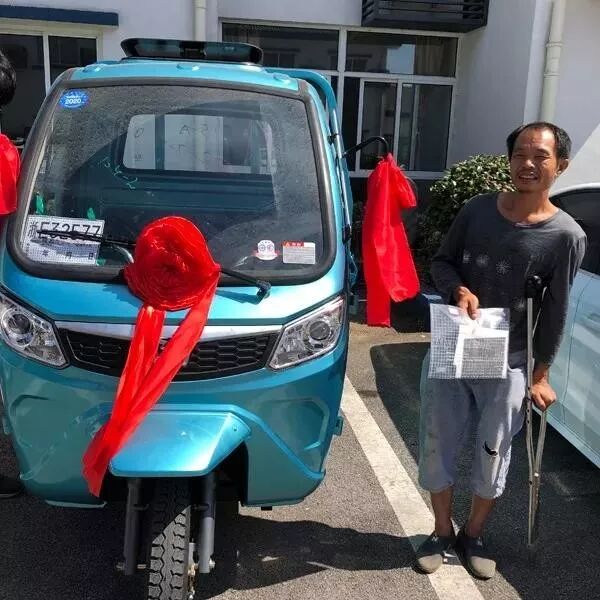 路上,董伟刚得知老汪是村里的低保户,除了他本人有腿脚不便等病症,家里还有亲人长期需药物治疗,家庭负担很重。一家人靠老汪开电动三轮车在周边捡破烂维生。到了老汪家,看到老汪的房子和屋内简陋的摆设,董伟刚的心情愈发沉重:扣押电动三轮车等于断了这一家人的活路,买新车要一万多,老汪肯定无力承担,我们能做点什么来帮帮他呢?回单位后,董伟刚立即向所领导汇报了老汪家的情况。“执法必严,人间有情”,派出所决定帮老汪做点力所能及的事。董伟刚告诉老汪,只要他考取驾驶证,民警会想办法帮他买一辆全新的电动三轮车。老汪把董伟刚的话记在了心里,经一番努力,老汪终于在6月份取得了机动三轮车驾驶证,他高兴地把这个好消息告诉了董伟刚。董伟刚拍拍老汪的肩说:“老汪,恭喜你!该我们来兑现承诺了。”随后,小浦派出所所长周全积极联系小浦镇政府和五庄村进行帮扶,董伟刚则发动辖区企业进行募捐活动。历时近一个月,在村、镇两级组织及相关企业的捐助下,大家在7月末终于凑齐了给老汪买电动三轮车的一万五千元钱,并把崭新的电动三轮车送到老汪手中。