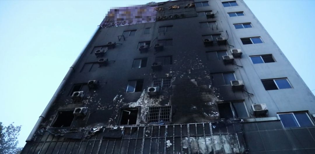 一栋8层楼冒起滚滚浓烟外墙被烧得漆黑