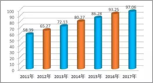 《报告》显示,2017年中国全面建成小康社会指数(简称“全面小康指数”)为97.06,连续7年上升。