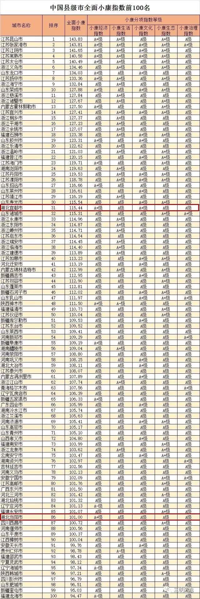 原标题:中国地级市全面小康指数前100名出炉!宜昌排名……