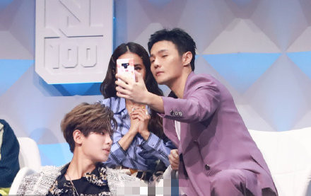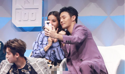 2019年4月6日晚,蔡依林、李荣浩作为导师亮相某节目,台下两人开心热聊、举手机自拍合影,蔡依林的大眼睛与李荣浩的“眯眯眼”形成鲜明对比,另类诠释“睁一只眼闭一只眼”。