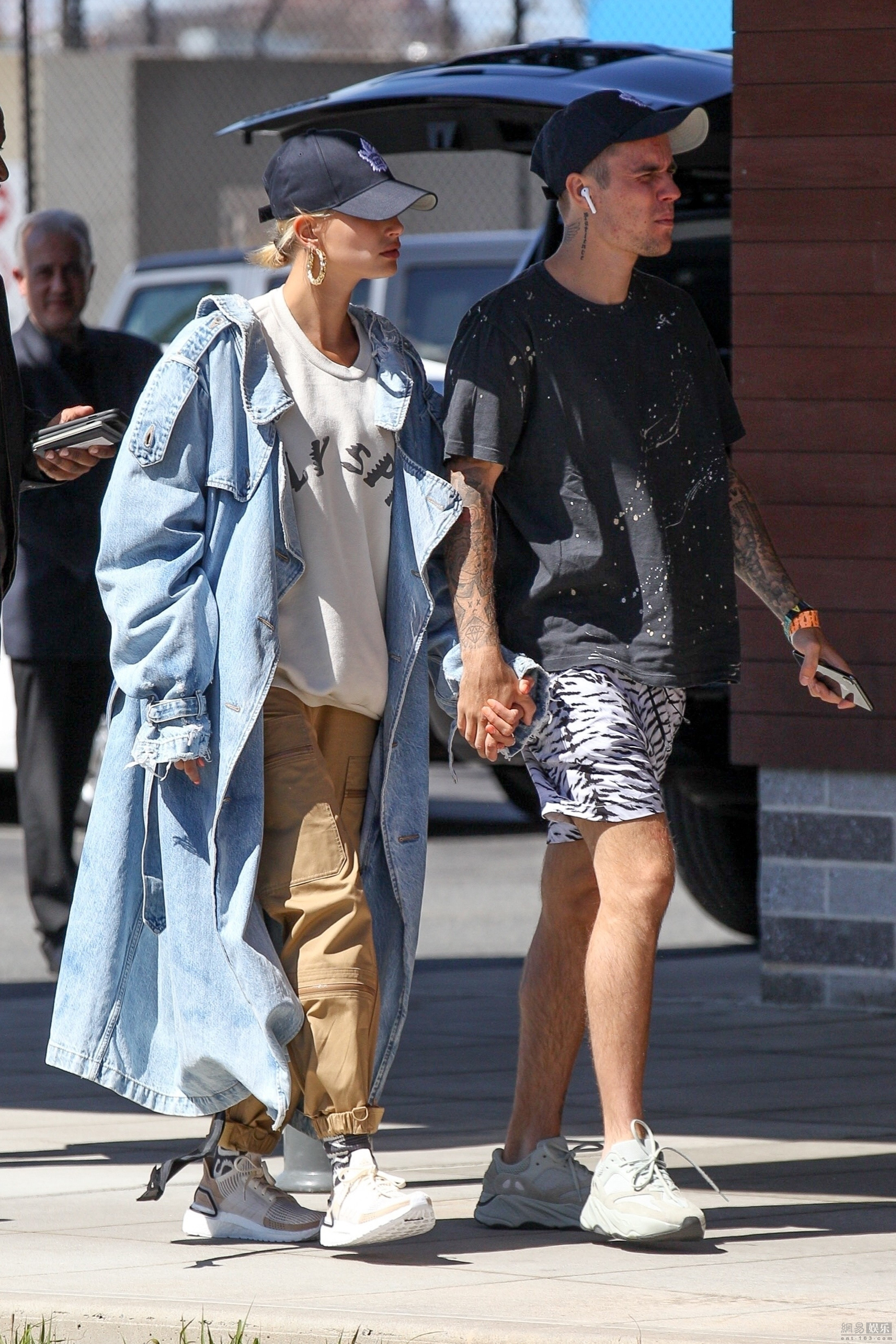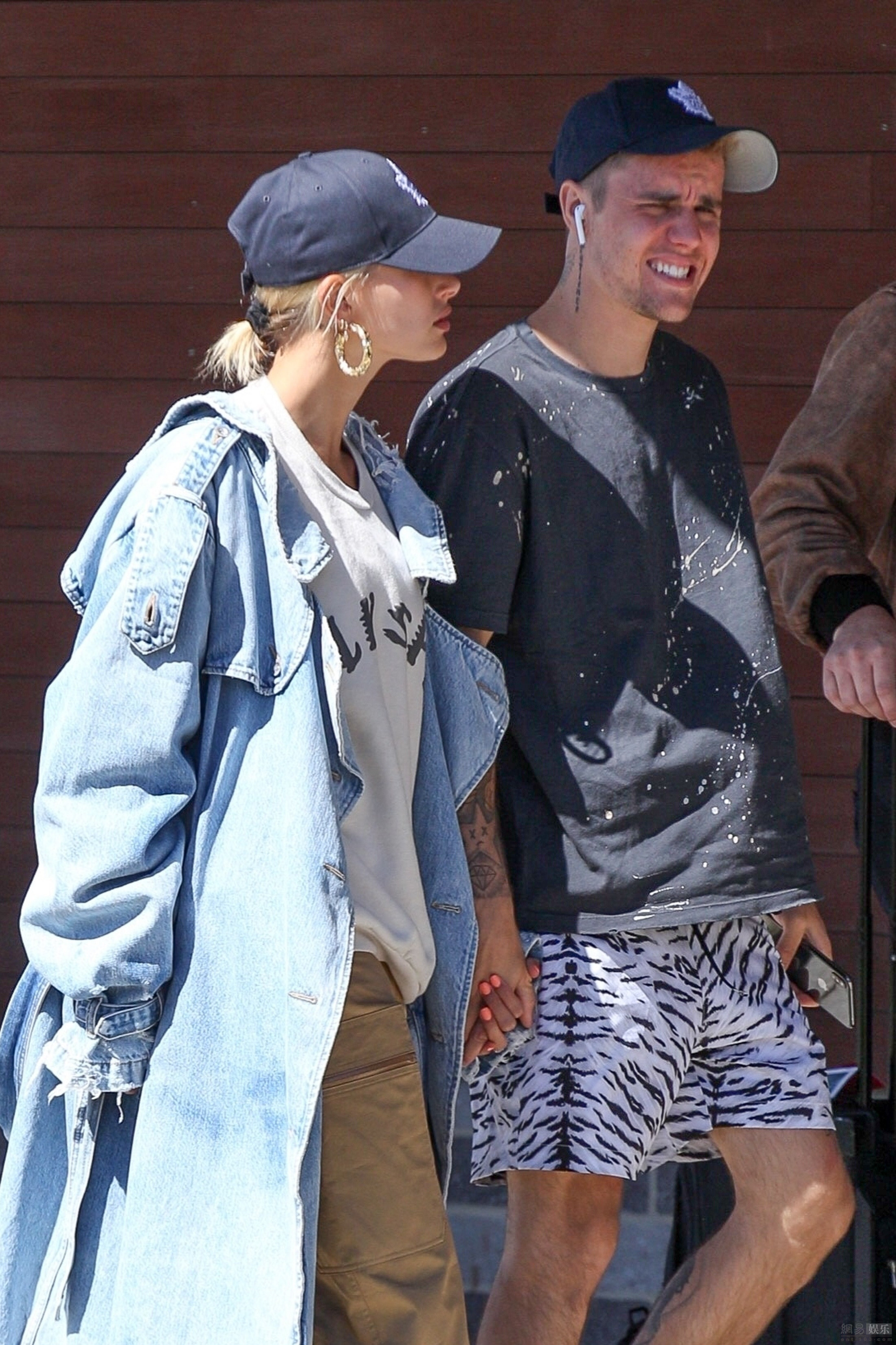 当地时间2019年4月24日,美国波士顿,贾斯汀?比伯(Justin Bieber)和未婚妻海莉?鲍德温(Hailey Baldwin)现身街头。比伯被晒紧皱眉头,表情十分喜感,走路不忘牵老婆的手。海莉不惧炎热依然穿着oversized外套凹造型,怀里抱着狗十足的爱狗人士。