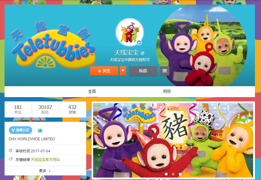 而且你知道吗?天线宝宝有中国区官博哦@天线宝宝