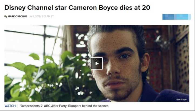 网易娱乐7月7日报道 据外媒报道,迪士尼影星卡梅隆·伯艾斯(Cameron Boyce)在睡梦中因癫痫发作去世,代表作《Descendants》系列,年仅20岁。