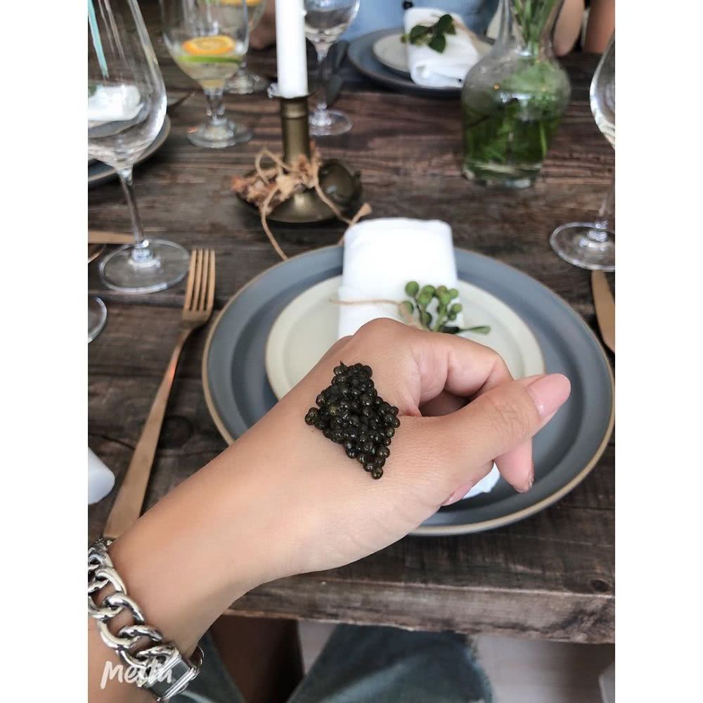 不过最令网友们咋舌的是,众人不仅在中午大白天聚餐的时候点上了蜡烛,而且更将售价约10万一盒的奢华鱼子酱放在手背上拍照做装饰,十分奢豪。