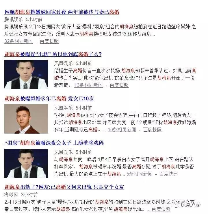 2014年7月,狗仔终于拍到胡海泉疑似一家出游,还爆料胡海泉已经隐婚5年多。