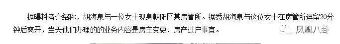 同年6月19日,有爆料称胡海泉夫妇在朝阳区房管所班里房产变更手续。