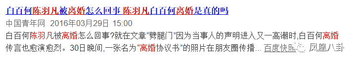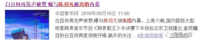 对于陈羽凡、白百合的婚变传闻,几乎形成一个模式:隔三差五传出,陈羽凡立刻回击,然后再传出,再回击,再传出……周而复始,循环不止……