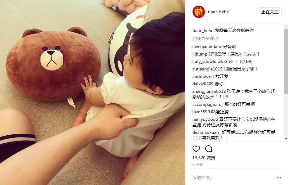 虽然每次晒娃都会给孩子的脸挡住,不过大致轮廓已经非常明显,一看就是女婴版的“陈赫”。