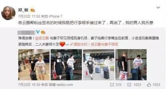 有网友吐槽说大包小包都是媳妇儿拎,看上去跟保姆似的,郑敏直接站出来回怼:我的男人我乐意。