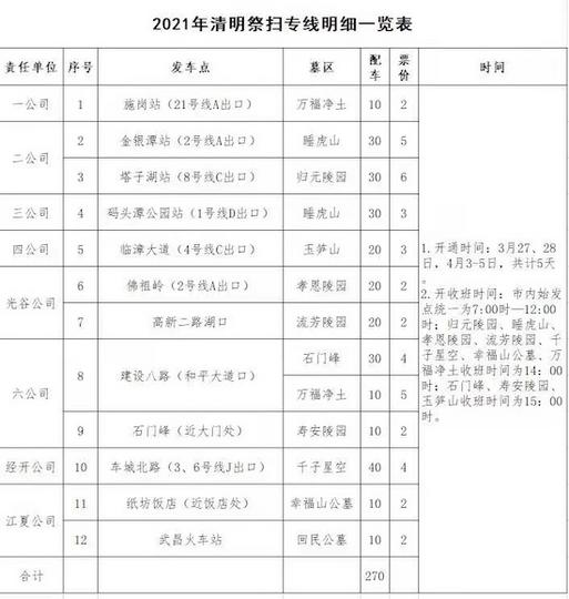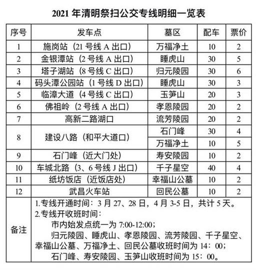 武汉公布清明祭扫出行方案:公交开通13条专线 地铁提前开班