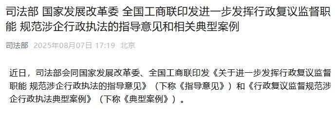 最高法、司法部联合发布规范涉企执法司法行政复议、行政诉讼典型案例