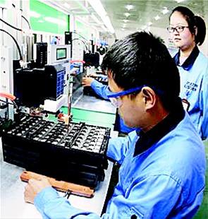 近日,红安力神电池动力系统有限公司员工正在精心焊接动力电池组。该产品广泛应用于城市交通、航空航天等领域。(记者 张鸿 视界网 李涛 摄)