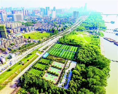 武汉市武昌区长江二桥至二七长江大桥沿线江滩鸟瞰。(记者 梅涛 摄)