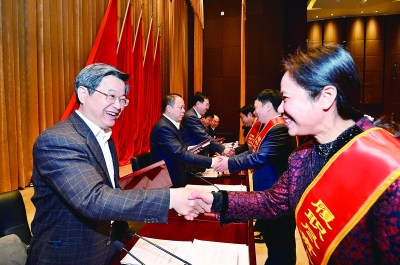 昨日,省委副书记、市委书记陈一新为2016年度履职尽责、干事创业突出个人颁奖。长江日报记者周超 摄