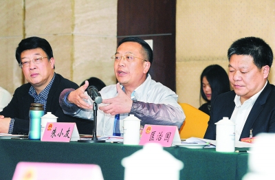 昨日在青山代表团小组会上,市人大代表朱小友积极发言。记者刘斌 摄