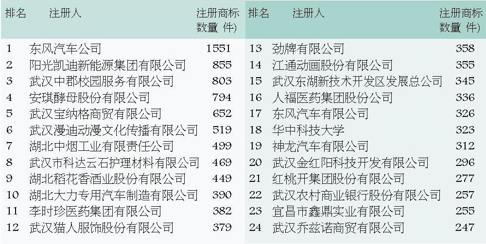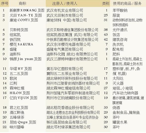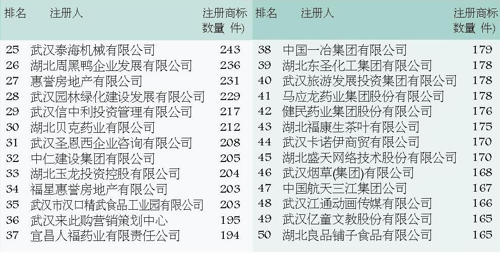 湖北省企业商标注册总量50强
