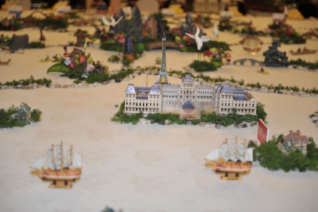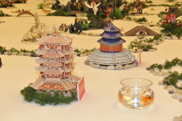 “两国”之间,还有精致小巧的火车和铁轨相连,象征着武汉到里昂的专列,再配以精雕细刻的山水造型,山水相融,意境自显。