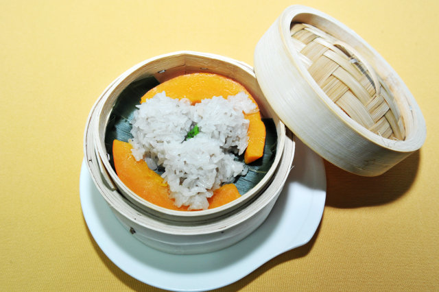 珍珠米元为仙桃小吃,圆子蒸熟后,外面粘的整粒糯米发光油亮,形似珍珠,因而得名,是著名的“沔阳三蒸”之一。蒸菜,自然象征着中法关系、法国和湖北之间的友谊蒸蒸日上。