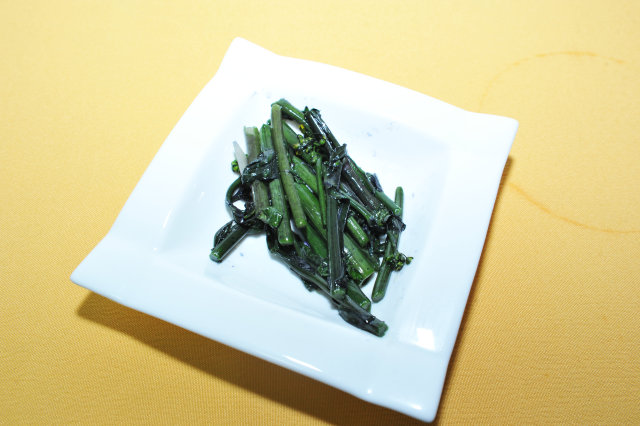 洪山菜薹,在唐代已经是著名的蔬菜,历来是湖北地方向皇帝进贡的土特产,曾被封为“金殿玉菜”。因其珍贵,东湖宾馆专门辟一块菜园,自己种植,以让来此的客人们能尽情享用。