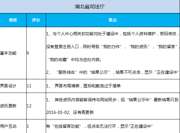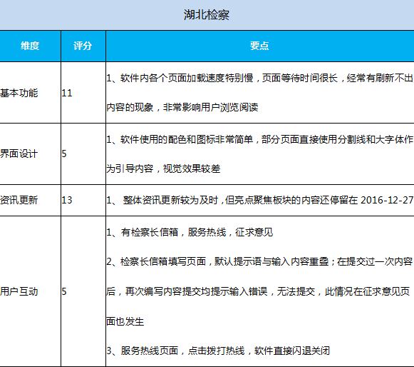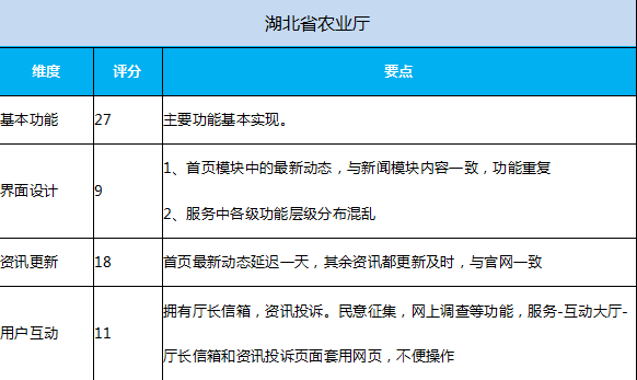 测评报告显示:本次测试的湖北政务(公共服务)App,整体上做到了功能明确及基本可用,资讯更新及时;软件兼容性、功能实现程度和水平上,众App参差不齐,差距较大;由于对软件安全性、应用市场推广普遍缺乏足够重视,导致政务(公共服务)App整体下载量偏低,用户满意率不高。