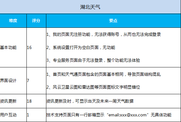 所有测试App中,针对自己的核心业务范围都推出了自身特色的基础服务功能,主体功能都基本可用,但实现程度差别较大。比如《湖北检察》App各页面加载速度慢,经常会刷不出内容。《湖北省交通运输厅》规则查询、路况动态两个模块无数据。在UI设计及交互体验上,各款App水平参差不齐。比如《智慧博物馆》整体UI精致美观、区分合理,《湖北交管》布局逻辑性不强、界面颜色过多。《湖北天气》首页与天气通频道页面雷同,结构混乱,风云卫星云图和雷达图等页面图标文字明显错位。