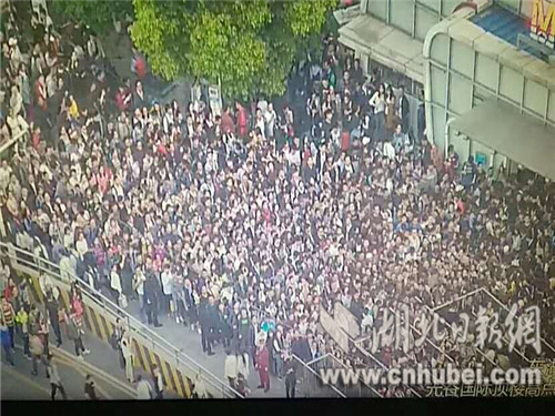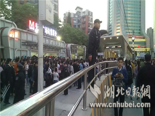 五万余人骤然涌入光谷地铁站时的壮观景象。记者 叶宁 摄