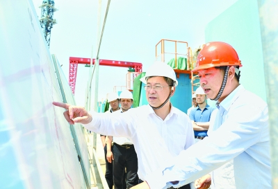 昨日上午,省委副书记、市委书记陈一新调研防洪排涝工程江南泵站的建设,听取项目进展汇报 记者周超 摄