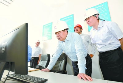昨日上午,在四新泵站,市长万勇来到中控室,检查应急抽排运行情况 记者郭良朔 摄