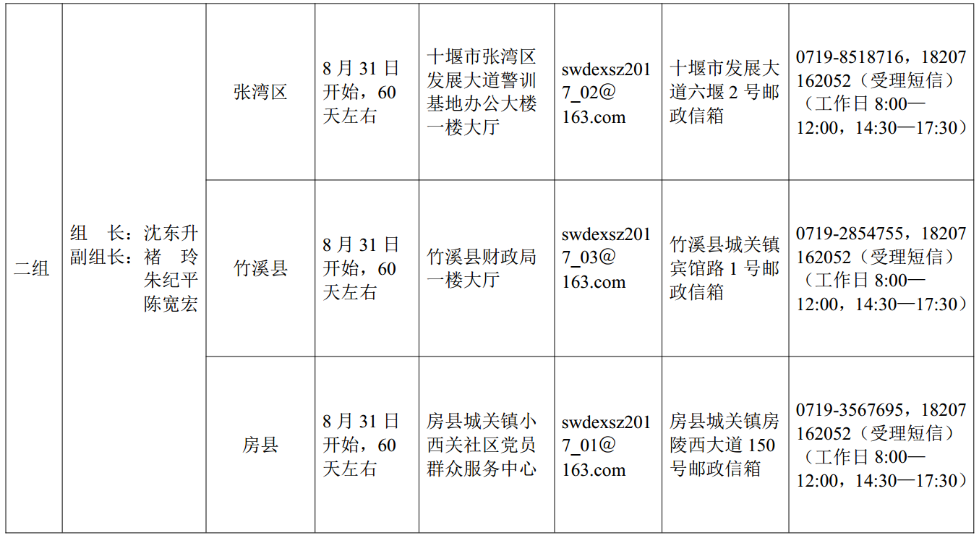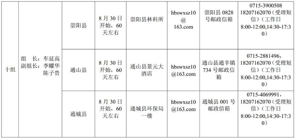 湖北省委巡视组进驻情况一览表