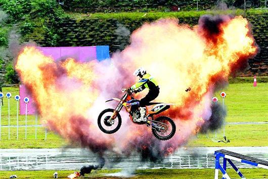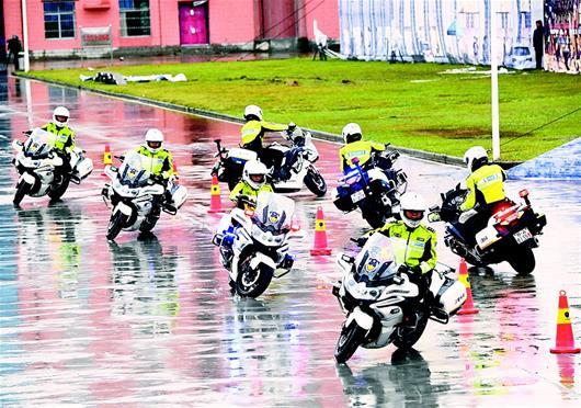 警灯闪烁,马达轰鸣;金戈铁马,铁蹄声声。荆州、武汉摩托车队,宜昌小轿车队依次闪亮登场:过独木桥、穿越火圈、大蛇形绕桩、对向穿花、翘头翘尾驾驶、半自动漂移、180?调头入位、360?变向行驶……他们,以飞扬的身姿、高超的驾驶技能,彰显着湖北公安“百尺竿头,更进一步”的壮志与豪情!