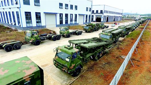 湖北日报讯 图为:华舟重工在赤壁设立应急装备制造基地,一辆辆载有应急重力支援桥的卡车整装待发。 (记者 陈勇 视界网 胡新华 摄)