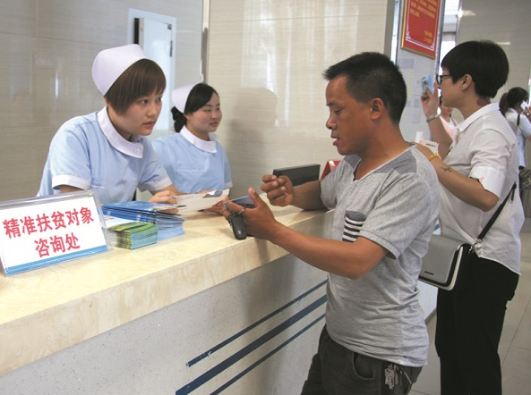 我们经过调研,发现有一部分贫困人口家庭确实困难,生病了不能及时入院治疗,导致小病拖大、大病拖重。为了及时有效方便农村贫困人口,湖北出台政策,明确建档立卡农村贫困人口在县域内定点医疗机构住院时,持社会保障卡、有效身份证件办理入院手续,无需缴纳住院押金,直接住院治疗。