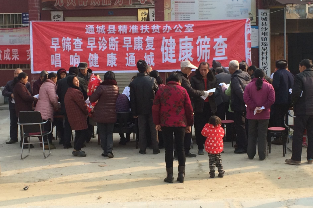12月24日,咸宁市通城县沙堆镇瑶泉村村委会门口,由通城县扶贫办、通城县人民医院等联合组织的重大疾病免费筛查活动正在举行。