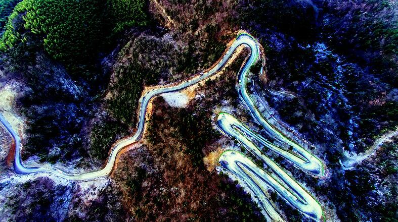 上图:1月11日,东源花谷扶贫公路一直修到了海拔950米的大幕山主峰。